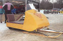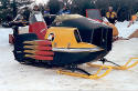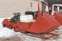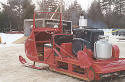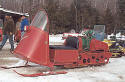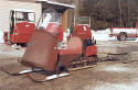 This sled has a tin cowling. The first sleds manufactured of this model came through with wooden skis. Owned by Wayne Campbell in Millinocket, Maine. |